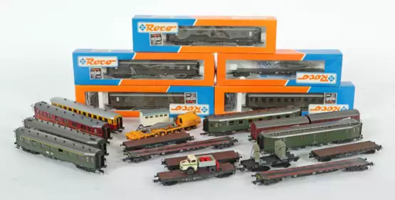 Lot 197 | 20 Personen- und Güterwagen Roco, Spur H0, Wagenserie 44530, 44531, 44…