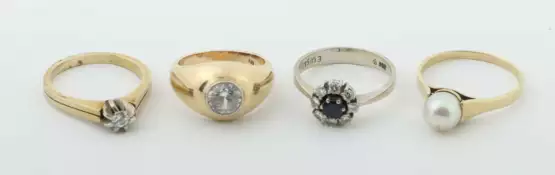 Lot 1318 | 4 Ringe 20. Jhr., Gelbgold 585, bes. mit Perle, Diamant im Brillantsch…