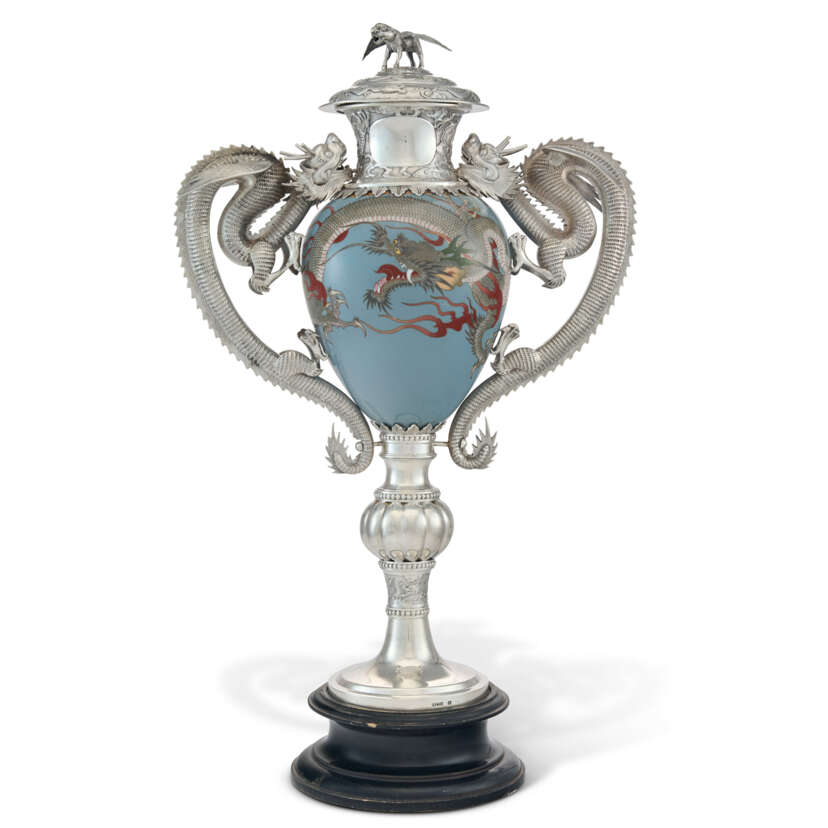 Lot 71 | A CHINESE EXPORT SILVER-MOUNTED JAPANESE CLOISONNE ENAMEL VASE