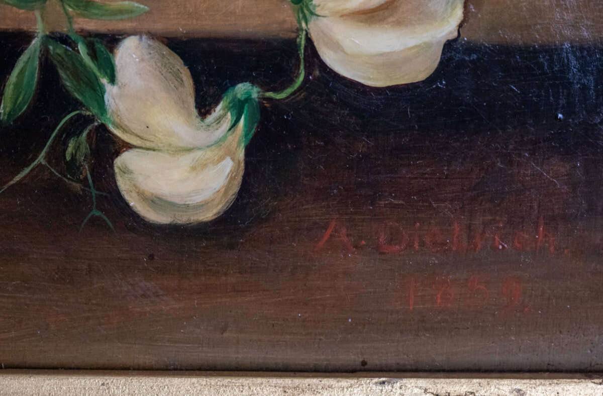 Flower Still Life, paper mounted on canvas, 50 × 39 cm, signed, dated 1859, with minor