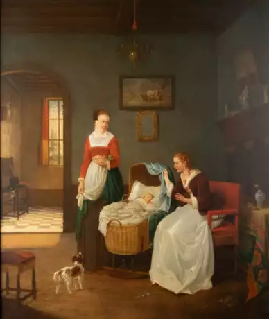 Mother's Joy, oil on wood, 76 x 63 cm, signed, dated 1871, partially retouched, minimally