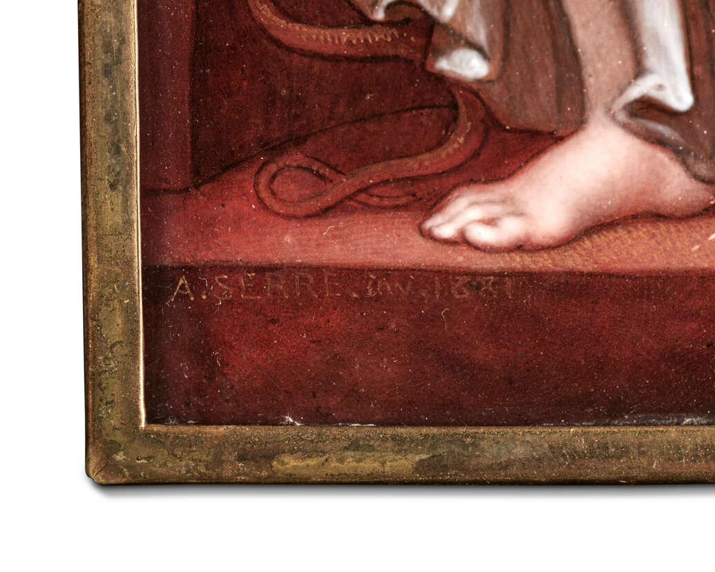 Alfred Serre received his initial training with the history painter Eugène Levasseur before beginning a career as a designer in jewelry. Early on, he experimented with enamel through small grisaille plaques, continually refining his technique and acquiring the knowledge that would make him both inventive and a master in execution.
