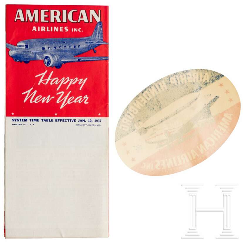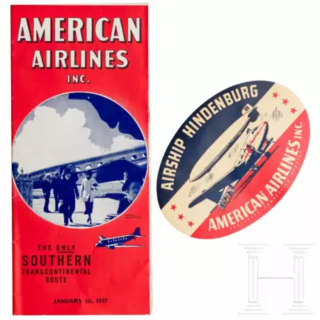 Lot 4130 | American-Airlines-Werbebroschüre und "Airship Hindenburg"-Gepäckaufkleber