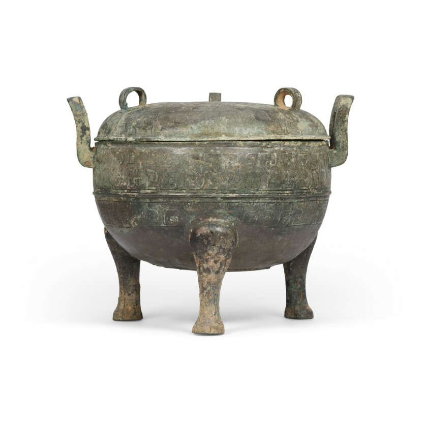 Lot 1226 | AN ARCHAIC BRONZE TRIPOD RITUAL FOOD VESSEL AND COVER, DING