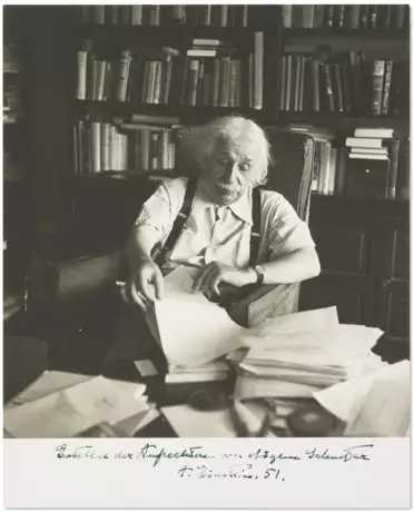 – EINSTEIN, Albert. Photograph signed ("A. Einstein. 51.") inscribed to Estella [Katzenellenbogen], 210 x 170mm.