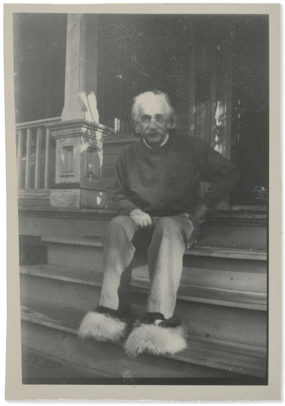 – Nine candid photographs, mostly 85 x 60mm (one 40 x 30mm) including images of Einstein posing in a pair of furry slippers, in a rowboat, his home in Princeton, and two of his sister Maja.