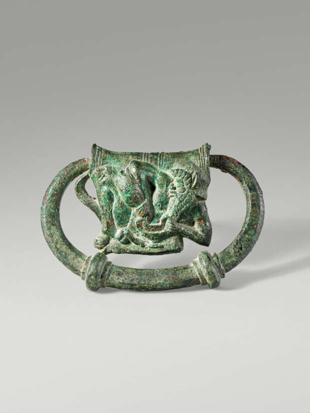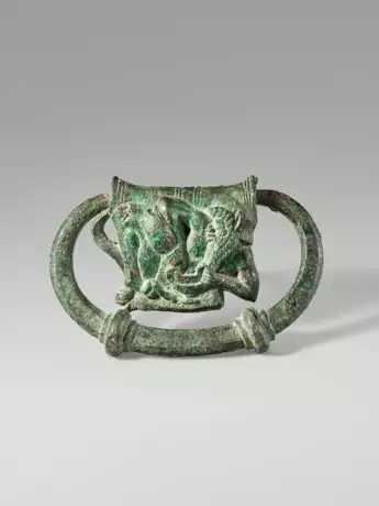 Lot 51 | AN ETRUSCAN BRONZE HANDLE WITH A RECLINING SATYR
