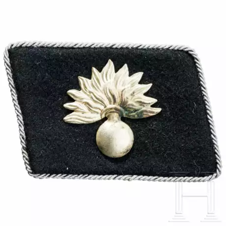 Schwarzer Kragenspiegel mit versilberter Metallauflage, umlaufende Silberkordel. Getragen von Soldaten der 34. SS-Freiwilligen-Grenadier-Division "Landstorm Nederland“.
