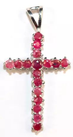 Lot 850 | Anhänger "Kreuz“, 925er Silber, Rubine mit leicht unterschiedlichen Farben und Qualitäten, Maße mit Öse ca. 3,6 x 2,0 cm