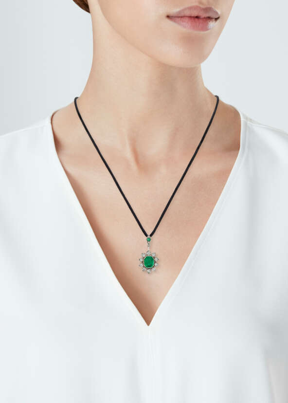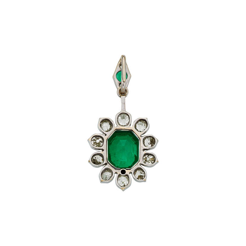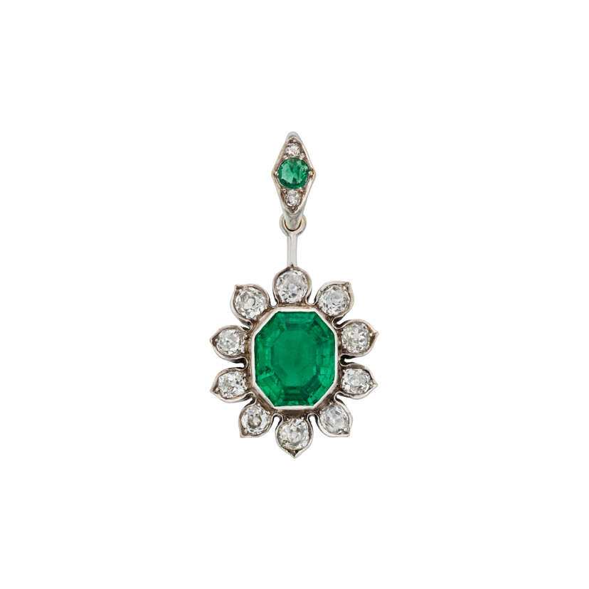 Lot 106 | ANTIQUE EMERALD AND DIAMOND PENDANT