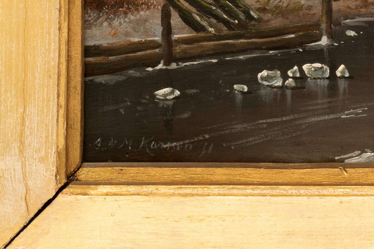 Winter Landscape, oil on wood panel, 29 × 46 cm, signed and dated
