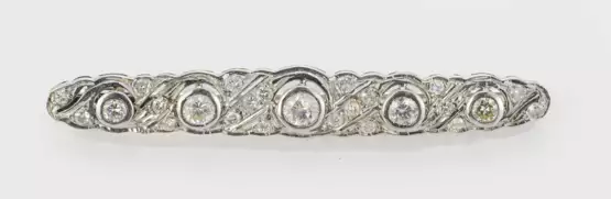 Weißgold, gest. 585. Schauseitig besetzt mit Altschliffdiamanten von zus. ca. 1,90 ct.; Gew. ca. 8,41 g.