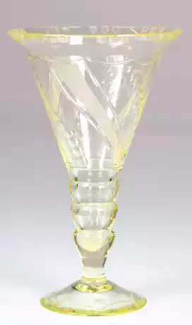 Lot 636 | Art Deco-Glasvase, wohl Moser, hellgelbes Glas mit Ornamentalschliff, H. 20 cm