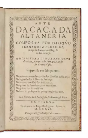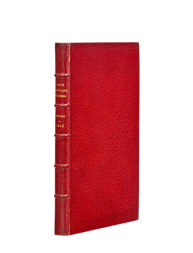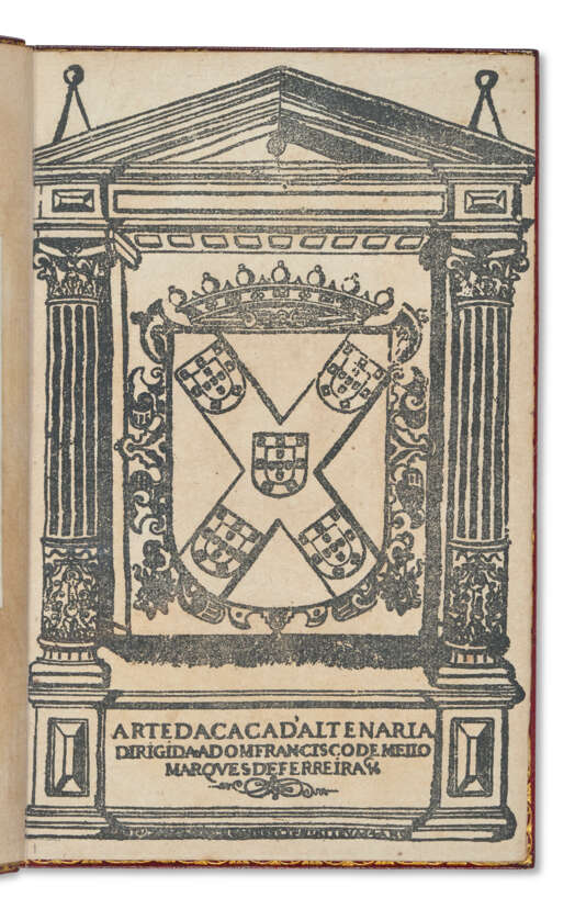 The only early Portuguese hawking treatise. “Very rare” (Schwerdt). The Cosens-Schwerdt-Mindlin copy. Diego Fernandez (or Fernandes) Ferreira was a Portuguese falconer and his book largely follows the structure of the famous Libro de la caza de las aves (1385-86) by Pedro López de Ayala. It was translated into Spanish by Juan Bautista de Morales in 1625. Harting, Bibliotheca Accipitraria 262 (“The only Portuguese work on the subject which has come to light after long search, and inquiries made through friends resident in Portugal”); Biblioteca de Salvá 2621(“el antefrontis grabado, por estar tirado suelto, suele faltar en los puoquisimos ejemplares que se encuentran de esta obra”); Schwerdt I, p. 171; Souhart 184 (“fort rare”).