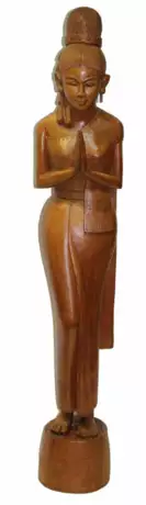 117 cm. Tropenholz aus einem Stück geschnitzt. Feinfühlige Darstellung einer Betenden. 2.H.20.Jhdt. Qualitätsvolle Arbeit.