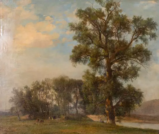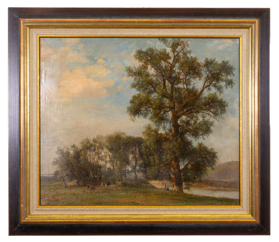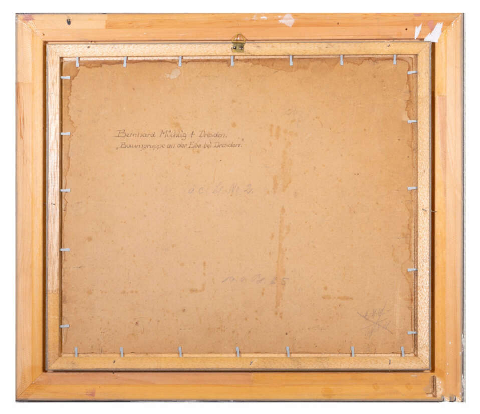 Group of Trees on the Elbe near Dresden, oil on panel, 39 × 33 cm panel dimensions, signed, mounted