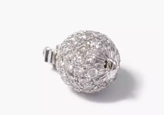 750 Weissgold. Kugelschloss mit Brillanten von ca. 1 ct, 9 mm, 2 g.
