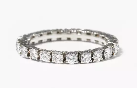 750 Weissgold. Feiner Alliancering mit Brillanten von ca. 1 ct. Gr 54, 2 g.