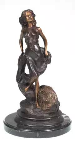 Lot 327 | Bronze-Figur "Sternzeichen Skorpion- junge Dame an Baumstamm stehend, zu ihren Füßen ein Skorpion", auf runder Marmorplinthe, Ges.-H. 36 cm