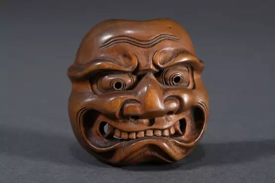 Lot 1273 | Boxwood netsuke ‘Nō mask frown Shikami’ with curve…
