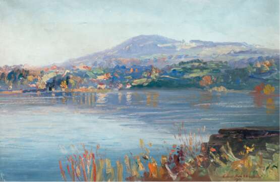Lot 169 | Burkhard, Ernst (1887 Richterswil-1970 ebenda) "Seeufer", Öl/Lw., sign. u.r. und dat. 1921, 31x43 cm, Rahmen