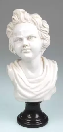Lot 326 | Büste "Junge Frau mit welligem Haar", weißer Gußmarmor, auf rundem, braunem Sockel, Ges. H. 34 cm