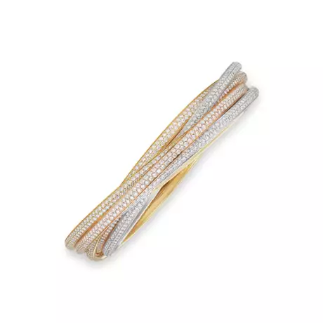 Lot 102 | CARTIER DIAMOND AND TRI-COLORED GOLD 'TRINITY' BANGLE BRACELET