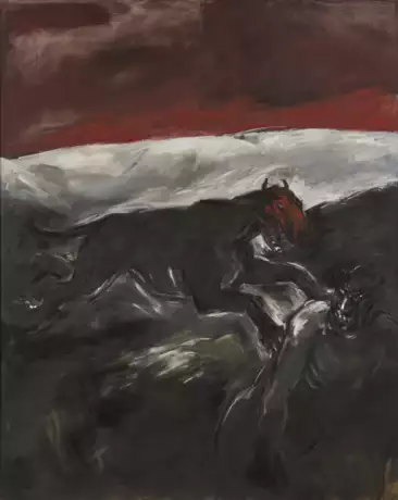 Low canvas tension. Slight rubbing in the corners. Occasional minimal rubbing in the margin areas. Otherwise in very good condition. The work was not removed from the frame for the catalogue description.