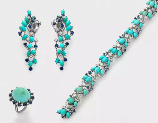 Lot 862 | Cocktail-Brillant-Parure mit Türkisen aus den 1960er Jahren
