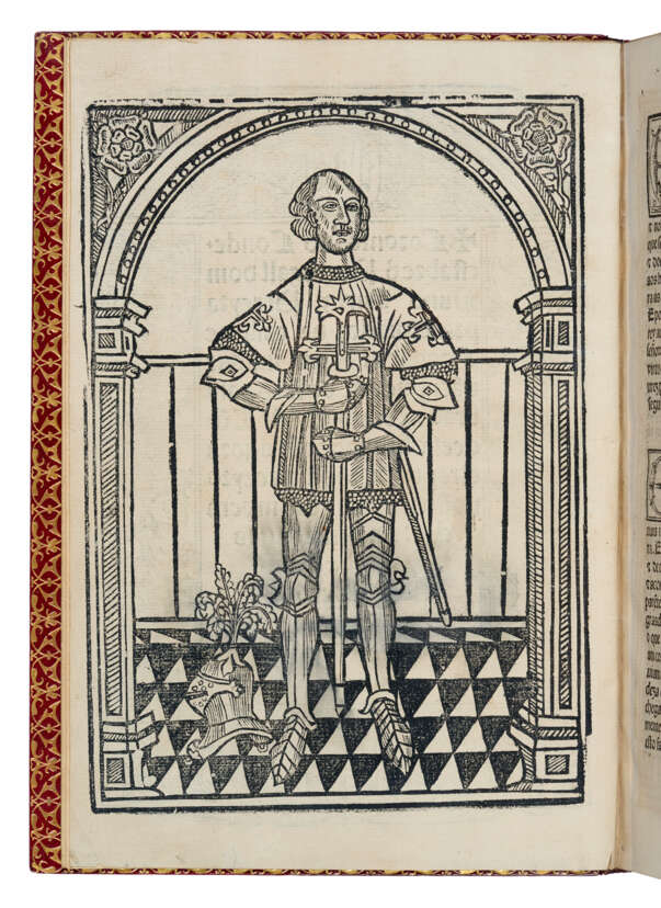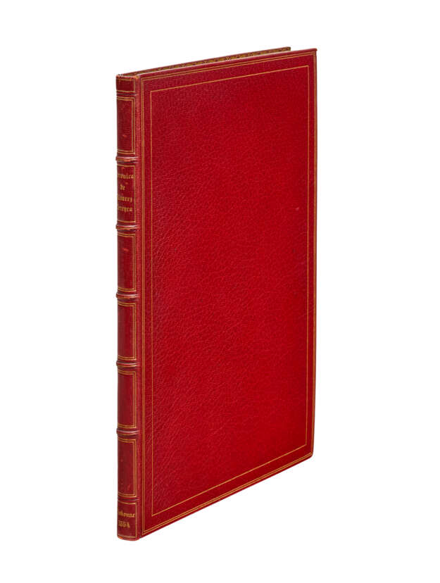 Folio (281 x 194mm). Title within ornamental woodcut border, full-page woodcut portrait on title verso, woodcut initials, large woodcut portrait on epitaph page (toned and pressed, two erasures and a little strengthening to title). Full red morocco gilt by R. Devauchelle, all edges gilt. Provenance: anonymous owner, Sotheby's, 23 June 1975, lot 131 – José Mindlin, 1914-2010 (bookplate) – Antonio Bonchristiano (bookplate).