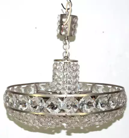 Lot 1032 | Deckenlampe, 10-flammig, Metall mit Prismenbehang, H. ca. 50 cm, Dm. ca. 53 cm, unvollständiger Prismenbehang