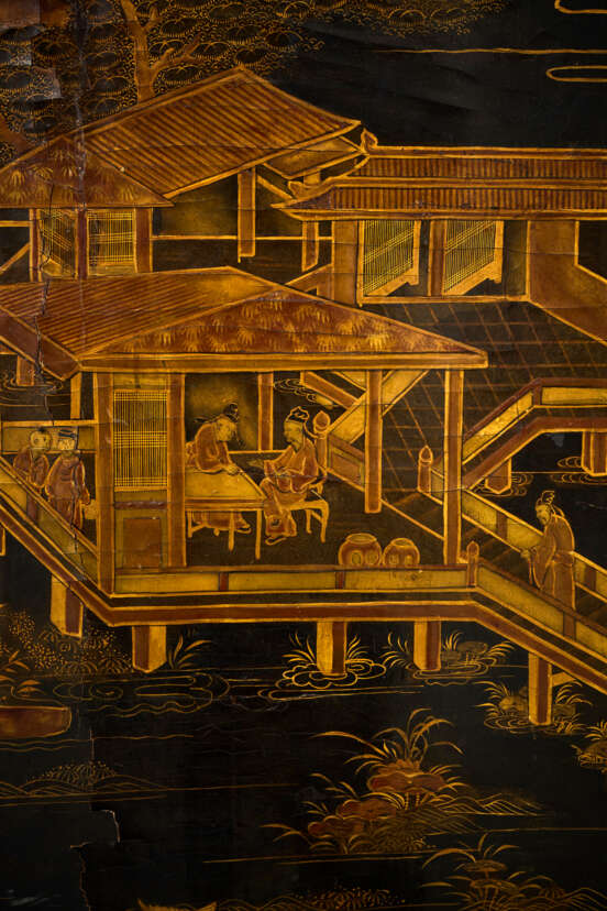 H. 153 cm. (601/4 in.) ; L. 150 (59 in.) . P. 47 cm. (181/2 in.)