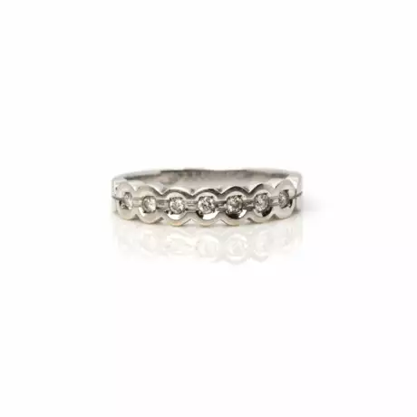 585 white gold, hallmarked, set with 7 brilliant-cut diamonds, total approx. 0.21 ct, H, VSI-SI, ring size 57, total weight approx. 3.6 g