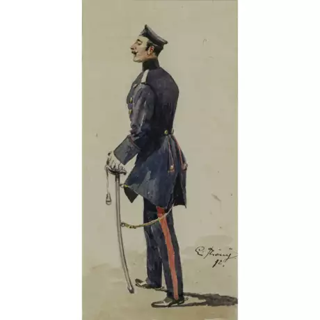 Signed and dated (18)92 lower right. Watercolour on vellum. 31.7 x 19.3 cm. Restored. Minor damage. Minor damage to frame (49.5 x 41.5 cm).