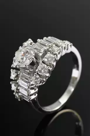 Lot 159 | Elegant mid-century 750 white gold ring with brill…