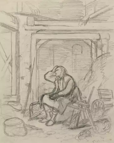 ╔Ders.:╗ Hockender Hirte in bayerischer Tracht, rechts oben Skizze eines Mädchenkopfes. Bleistift auf chamoisfarbenem Bütten. 26,4 x 20,8 cm. Re. unten sign. "von Enhuber". - Im Oberrand kleine Quetschfalte. Figurenstudie, wahrscheinlich für ein Gemälde. - Prov.: Slg. Christian Hammer, Stockholm (nicht bei Lugt). ╔Ders.:╗ Zwei junge Frauen mit einem Schriftstück in Unterhaltung. Bleistift auf chamoisfarbenem Velin mit Wasserzeichen: S Egger. 33,5 x 21,8 cm. Obere Ecken schräg geschnitten, auf Untersatz montiert u. dort ausgeschnittene Sign. "von Enhuber" aufgeklebt. - Winzige Fehlstelle li. oben, mit vereinzelten Stockfl. Figurenstudie, wahrscheinlich für ein Gemälde. - Prov.: Slg. Chr.Hammer, Stockholm (nicht bei Lugt).