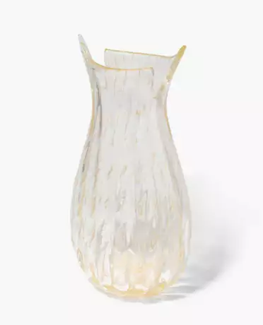 Entwurf 1950er Jahre. Farbloses Glas mit eingestochenem Luftblasendekor und zersprengten Goldfolieneinschlüssen. Unbezeichnet. H 38,5 cm.