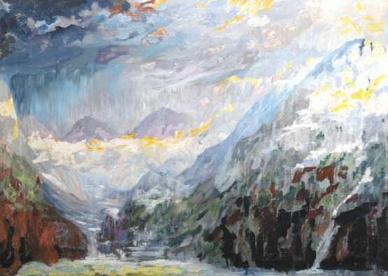 Lot 24 | Expressionist um 1900 "Gebirgslandschaft", Öl/ Lw., unsign., 1 Hinterlegung, 81x105 cm, ungerahmt