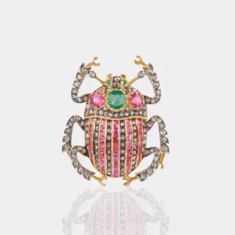 Lot 46 | Farbedelstein Brosche 'Skarabäus'.