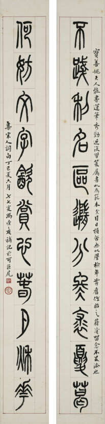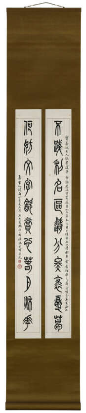 A pair of scrolls, mounted as a hanging scroll, ink on paper