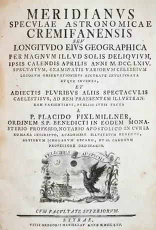 Poggendorff I.756. Kenney 57. Wurzbach IV, 261. Sehr selten. - Über die Ortsbestimmung des Observatoriums, das für viele Bibliotheken zum ersten Standardwerk der Astrogeodäsie wurde. - Vors. stockfleckig u. wurmspurig.