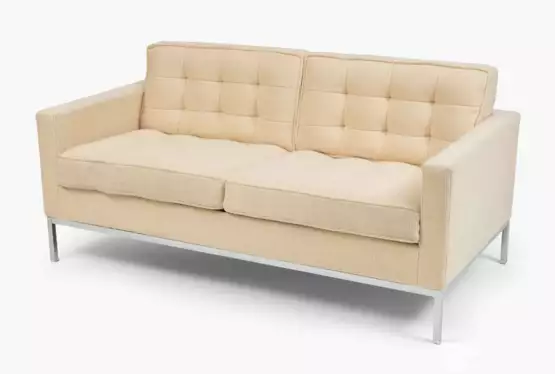Entwurf 1954 für Knoll International, Ausführung 1980er Jahre. 2-Plätzer. Verchromter Stahlrahmen. Gepolstert, crèmefarbener Wollbezug. Sitzhöhe 43 cm. 157x81x78 cm.