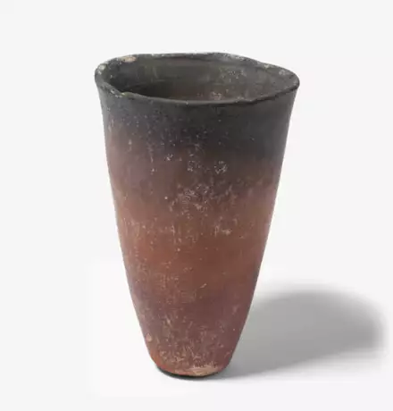 Prädynastisch, Naqada I-II, 4.Jtd. v. Chr. Spitzer Becher mit kleiner Standfläche. Schwarz geschmauchter Rand. H 14 cm.