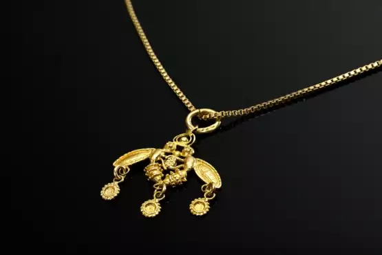 Lot 206 | Gelbgold 750 Anhänger "Minoische Biene von Malia" (1,3g, 2,1x2,3cm) an Gelbgold 585 Venezianerkette (4,9g, L. 60cm)