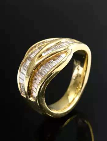 750 yellow gold ring with baguette diamonds (total approx. 2.80 ct/VSI-P1/W), 11.4 g, size 50.5