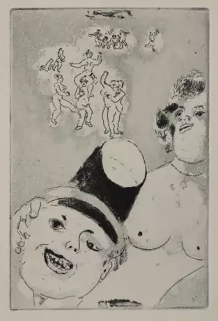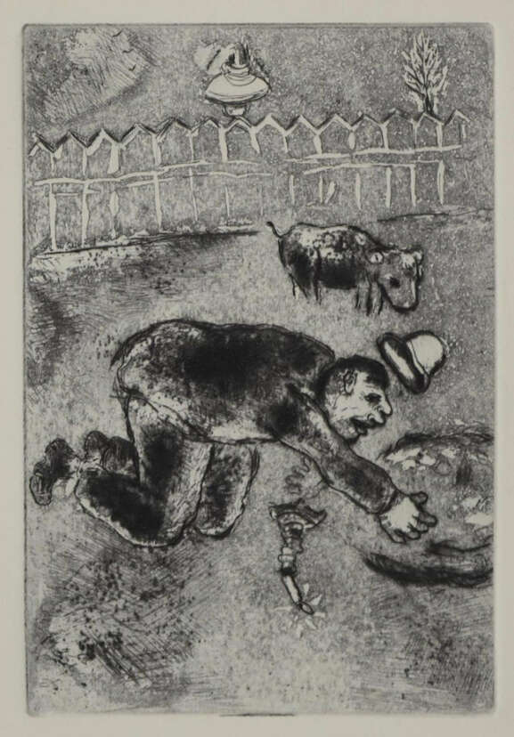 Eins von 240 num. Ex. (GA 300) der ersten Ausgabe. - Mahe, Editions de luxe, 45. Carteret IV, 313: ". . . recherche et cote". Kornfeld 47-62. Skira 45. Rauch 145. Dok. Bolliger, Chagall, 7. - Mit den poetischen Originalradierungen in gutem Zustand. Mit Texten zu den "Sieben Todsünden" von J.Giraudoux, P.Morand, P.Mac Orlan, A.Salmon, M.Jacob, J. de Lacretelle und J.Kessel. - Buchblock lose, zahlr. Bll. lose. - Alle Radierungen mit Seidenhemdchen, rücks. mont.