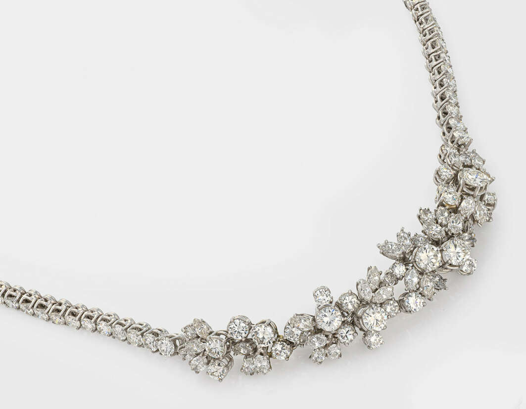 Weißgold, gest. 750. Schauseitig besetzt mit Brillanten von zus. ca. 8,47 ct. (H/vs/vs-si) und Diamant-Navetten von zus. ca. 3,00 ct. (H/vs). Gew. ca. 34,56 g.