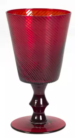 Lot 590 | Glas, rot, signiert "Papyrus", Scheibenfuß, Stiel mit Nodus, konische Kuppa mit Rillendekor, H. 18 cm