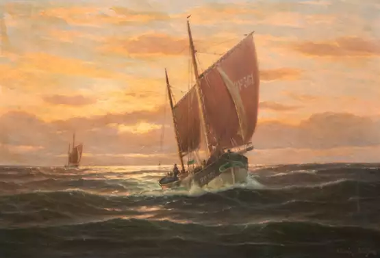 Lot 167 | Glüsing, Fräncis Martin (1886 Hamburg-1957 ebenda) "Fischkutter auf stürmischer See", Öl/ Lw., sign. u.r., 70x100 cm, Rahmen