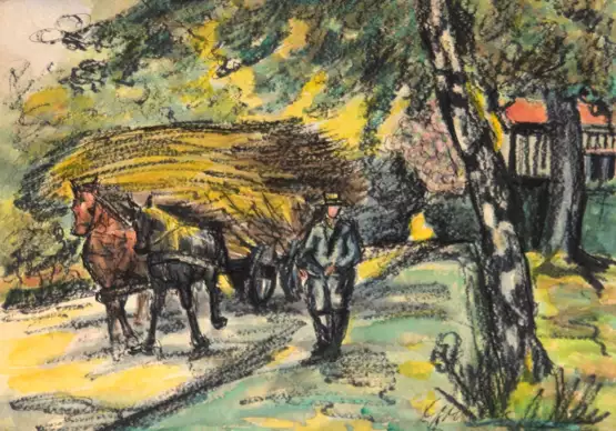 Lot 168 | Gödeke "Erntefuhre", Gouache, sign. u.r., 32,5x40,5 cm, ungerahmt